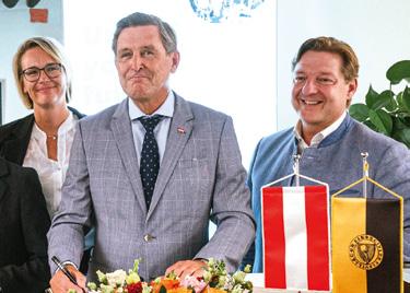 In Begleitung der Silicon Austria Lab Geschäftsführerinnen Christina Hirschl und Isabel Tausendschön sowie Bürgermeister Günther Albel besuchte Peter Hanke, Bundesminister für Innovation, Mobilität und Infrastruktur, die SAL Räumlichkeiten im tpv Technologiepark Villach. Nach der Eintragung in das Ehrenbuch der Stadt Villach genoss der Minister die hervorragende Stimmung, die Kulinarik und das Brauchtum am Kirchtag.