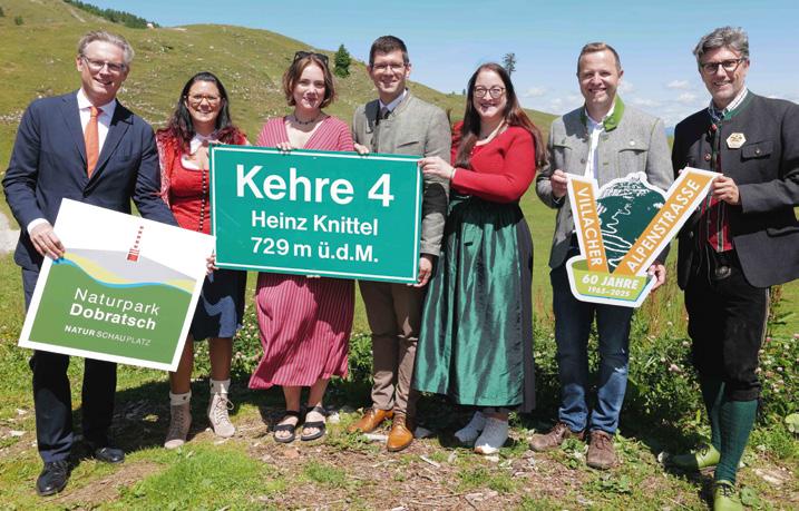 Die Villacher Alpenstraße, die von der GROHAG betrieben wird, zählt seit vielen Jahren zu den beliebtesten Ausflugszielen Kärntens bei Einheimischen und Gästen. Der 60. Geburtstag der frisch renovierten, 16,5 Kilometer langen und aussichtsreichen Verkehrsader in das Herz des Naturparks wurde mit einem Frühschoppen würdig begangen. Vizebürgermeisterin Sarah Katholnig und GROHAG-Geschäftsführer Johannes Hörl konnten etliche Ehrengäste aus den Naturparkgemeinden und der Landesregierung willkommen heißen, darunter auch die Familie des damals Bauverantwortlichen Heinz Knittel. Nach ihm wurde zum Jubiläum auch die Kehre 4 der Alpenstraße benannt.