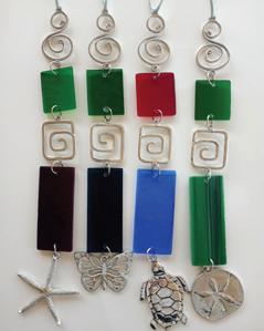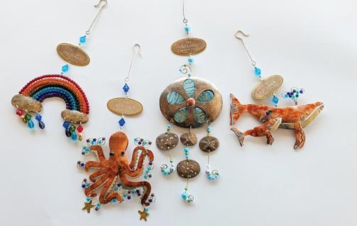 These handmade stained glass and metal suncatchers would make a window glow, even in the heart of winter. The long stained-glass pieces catch the sunlight and draw the eye to the beautifully detailed handmade pewter features, bringing the sea into your home this holiday season.