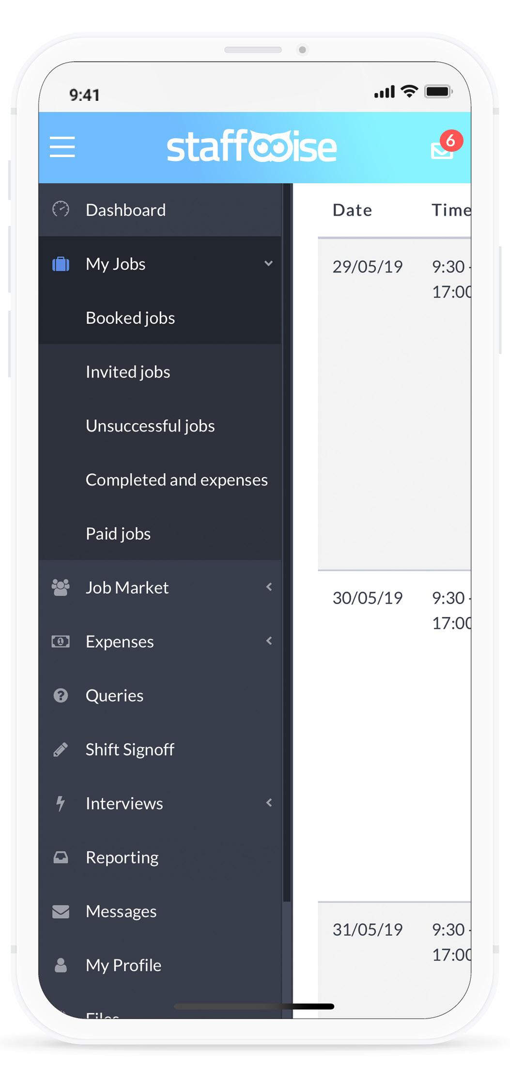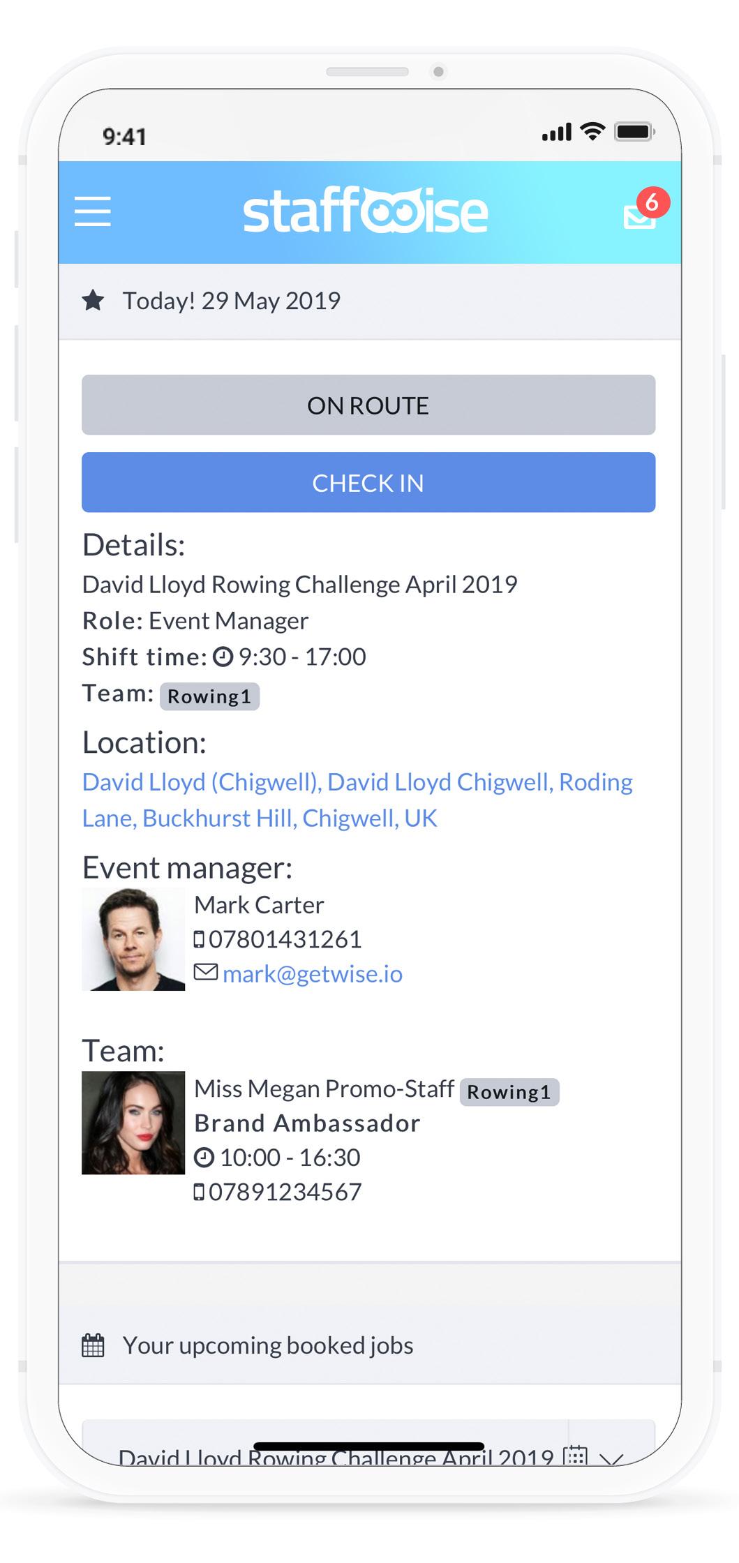 View upcoming booked jobs. View full status of shifts. Communicate with staff.