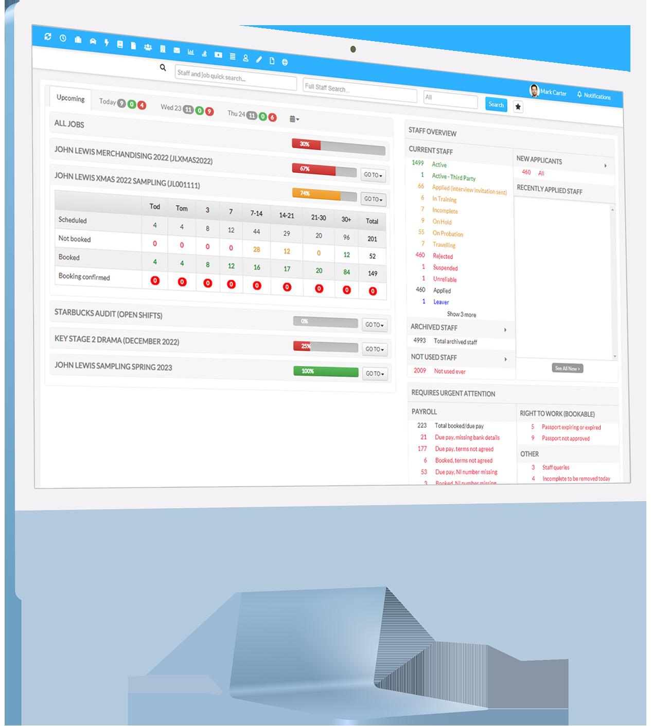 Chris Wareham, Founder & COO, Stellar Global Sarah-Jane Benham, CEO, Kru-Live Simon Baum, Director of BD, YES People Marketing Mhairi Boyle, Staffing Manager, Highjam MarketingGet organised and manage staff with our traffic light colour coded dashboard.