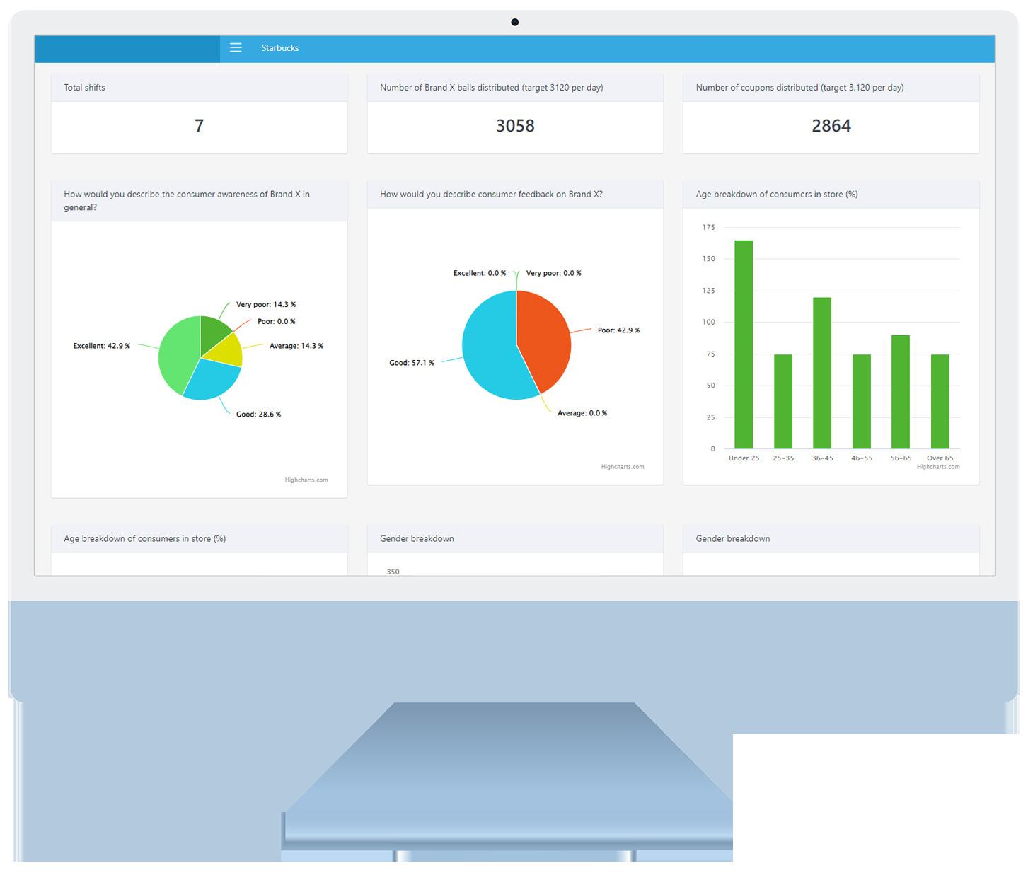 Create custom reports and surveys such as end of day reporting, data collection, field marketing, mystery shopping and more. * fees apply