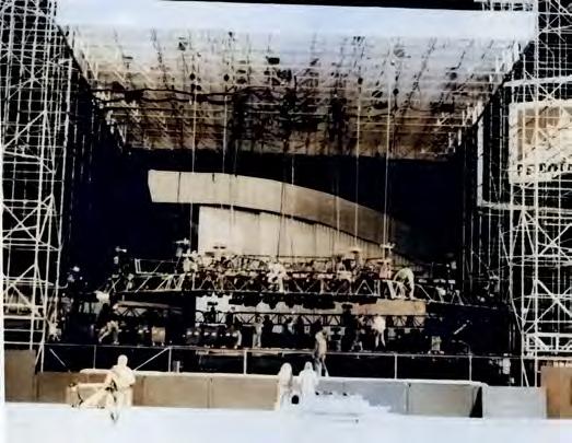 hours and to dismantle it and load it on 14 trucks in 12 hours. This very tight schedule was needed to assure a smooth flow of each and every concert.