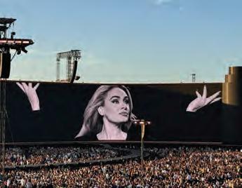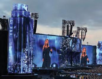 wonder comprised of 4,625m2 of ROE Carbon 5 Mark II LED panels, ensuring precise visual quality. Spanning no less than 244m in width and 18m in height, and flanked by cylindrical towers to resemble a gigantic analogue film reel, the curved video wall earned the GUINNESS WORLD RECORDS™ title for the Largest Continuous Outdoor LED Screen (temporary). This honour was presented to Adele by Joanne Brent, the Official Adjudicator for Guinness.