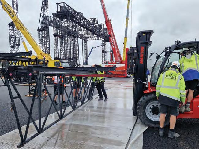 In total, 68 trucks arrived on site to deliver materials including approximately 1,800m of black steel, 500m of trussing, 6,000m of staging uprights, and 18,000m of staging beams, which came to Munich from four different countries.