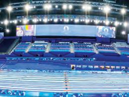 around the pools, totalling 10,000m2 between them. Additionally, STAGECO assembled several large camera platforms in the existing stands, as well as huge temporary cable bridges outside the arena.