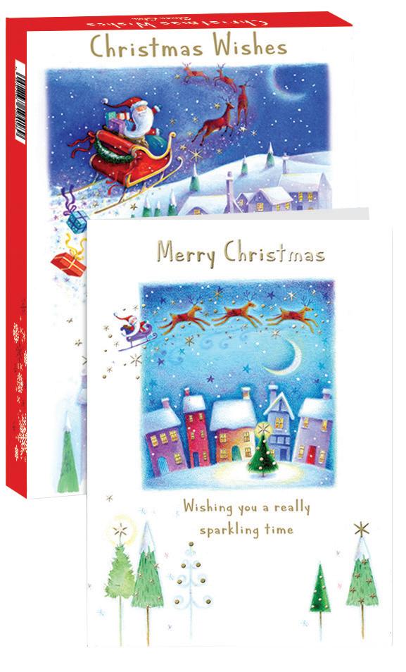All twelve designs are available for overprinting with your town name. They will be gold foiled on the front of the cards either top left or top right depending on the design with the wording ‘Christmas Greetings from... (your town name)’.
