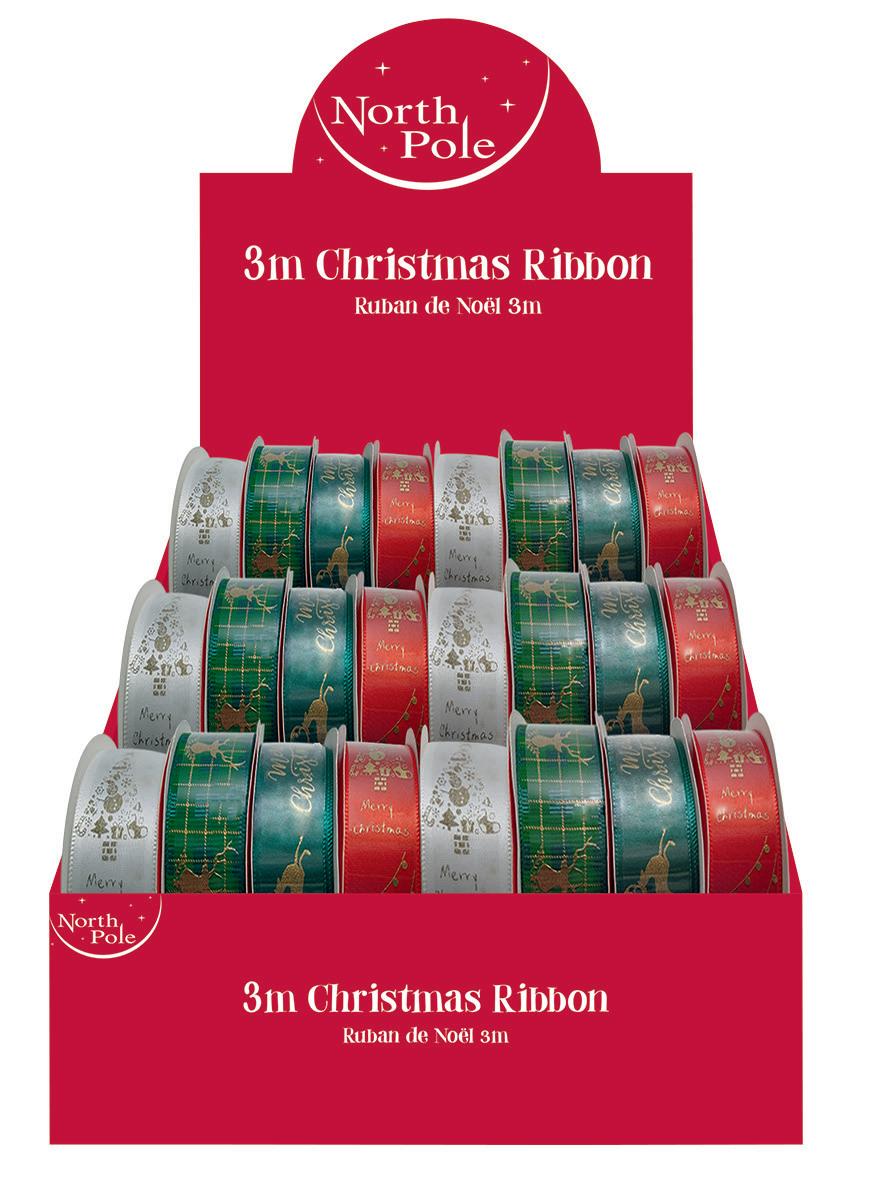 3m Traditional Silk Christmas Ribbon Assorted