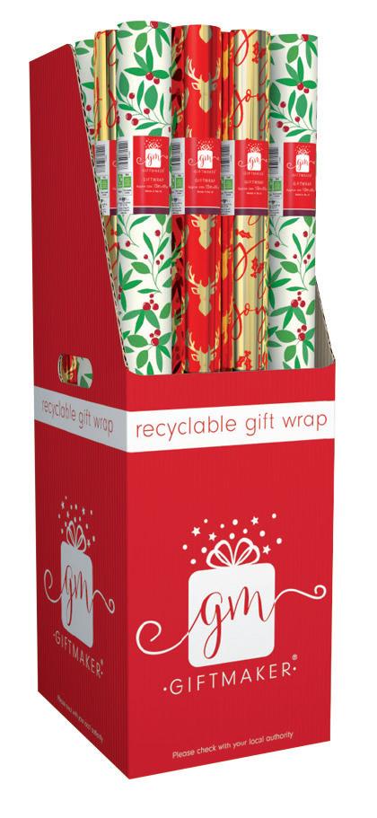 7m Contemporary Gift Wrap Roll 4 Assorted Designs CDU 4m Winter Wonderland Gift Wrap Roll CDU