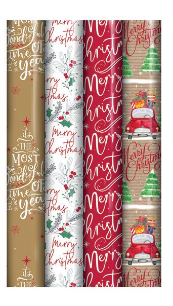 4m Elegant Traditions Gift Wrap Roll 4 Assorted Designs CDU 4m Santa & Friends Gift Wrap Roll 4 Assorted Designs CDU 4m Midnight Blue Gift Wrap Roll 3 Assorted Designs