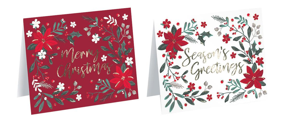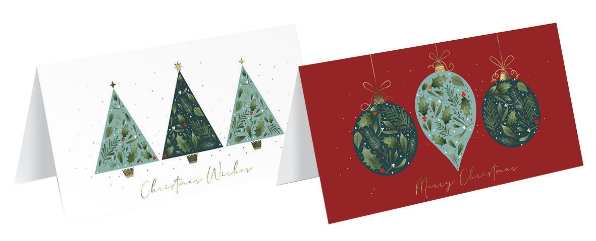 All twelve designs are available for overprinting with your town name. They will be gold foiled on the front of the cards either top left or top right depending on the design with the wording ‘Christmas Greetings from... (your town name)’.