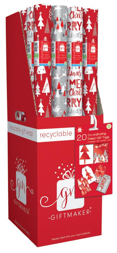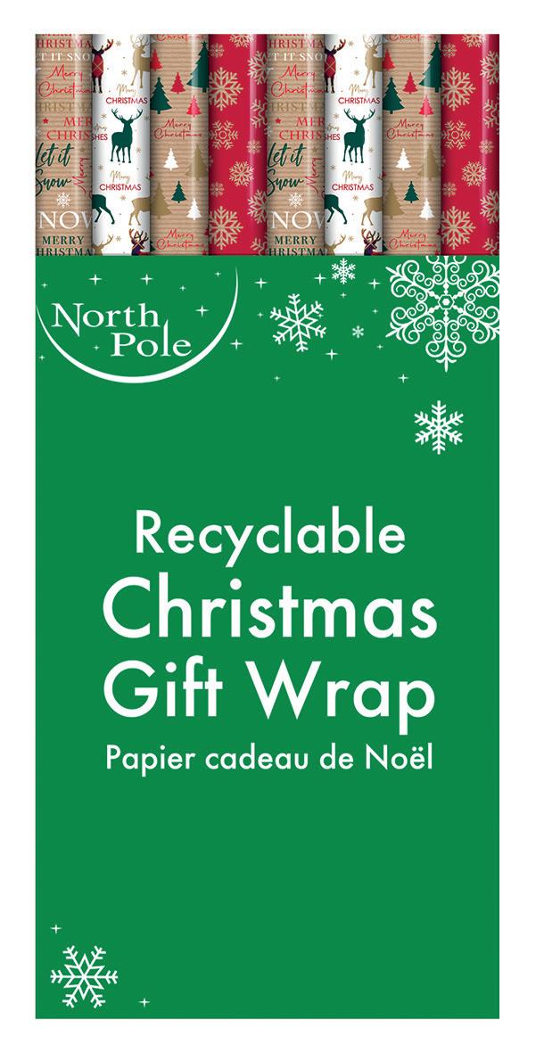 7m Contemporary Gift Wrap Roll 4 Assorted Designs CDU 4m Winter Wonderland Gift Wrap Roll CDU