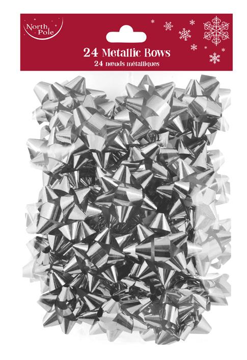 24 Red Metallic Bows Hang Pack 24 Silver Metallic Bows Hang Pack