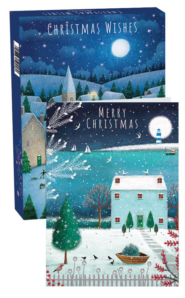 All cards are wrapped individually with the standard text inside ‘Wishing you a Merry Christmas and a Happy New Year’. The minimum order is a gross per town name and can be spread across as few or as many of the designs as you wish.