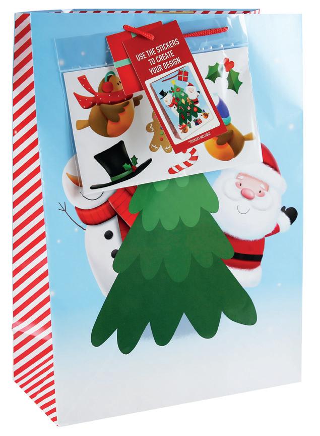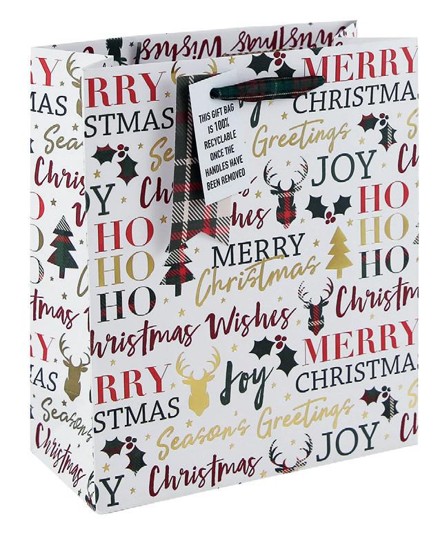 Gift Bags 04 XS0401 £1.15 Medium Pkd 12 XB0158M/FSC XS0402 £1.35 Large Pkd 12 XB0158L/FSC XS0403 £1.65 Extra Large Pkd 12 XB0158XL/FSC XS0412 £1.49 Medium Pkd 12 XANGB13M XS0413 £1.75 Large Pkd 12 XANGB13L XS0414 £1.99 Extra Large Pkd 12 XANGB13X XS0415 £1.15 Medium Pkd 12 XB0114M/FSC XS0416 £1.35 Large Pkd 12 XB0114L/FSC XS0417 £1.65 Extra Large Pkd 12 XB0114XL/FSC XS0418 £1.15 Medium Pkd 12 X-32715-3C XS0419 £1.49 Large Pkd 12 X-32715-2C XS0420 £1.85 Extra Large Pkd 12 X-32715-1WC XS0425 £1.15 Medium Pkd 12 X-32709-3C XS0426 £1.49 Large Pkd 12 X-32709-2C XS0427 £1.85 Extra Large Pkd 12 X-32709-1WC XS0421 £1.35 Large Pkd 12 X-32664-2C XS0422 £1.65 Extra Large Pkd 12 X-32664-1WC XS0423 £1.15 Medium Pkd 12 X-32679-3C XS0424 £1.49 Large Pkd 12 X-32679-2C XS0404 £0.99 Medium Pkd 12 XB0169M XS0405 £1.15 Large Pkd 12 XB0169L XS0406 £1.35 Extra Large Pkd 12 XB0169XL XS0407 £0.99 Bottle Pkd 12 XB0169B XS0408 £1.49 Medium Pkd 12 XANGB81M XS0409 £1.75 Large Pkd 12 XANGB81L XS0410 £1.99 Extra Large Pkd 12 XANGB81X XS0411 £1.49 Bottle Pkd 12 XANGB81B Modern Christmas Whimsical Reindeer Christmas Tree Robin Merry & Bright Dog Pattern Westie Dog Traditional Santa Tree with Stickers Santa Scene Foil Finish. Glitter and Foil Finish. Inside Print. 2 Designs. Includes Stickers to Decorate. Inside Print. Foil Finish. Inside Print. 100% Recyclable WHEN HANDLES ARE REMOVED 100% Recyclable 100% Recyclable 100% Recyclable 100% Recyclable 100% Recyclable
