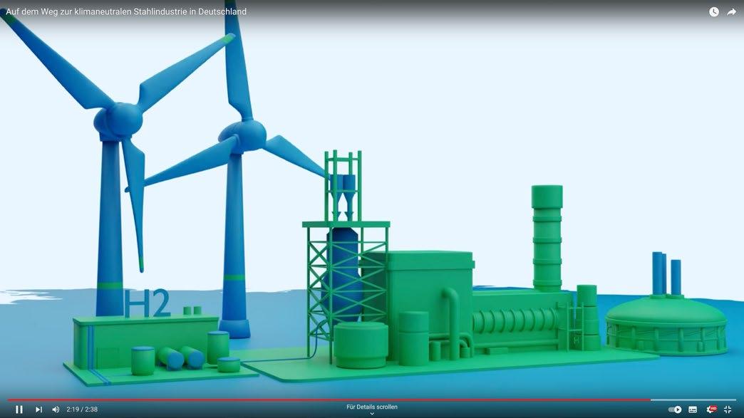 Im Jahr 2030 benötigt die Stahlindustrie in Deutschland 600.0000 t an grünem Wasserstoff.