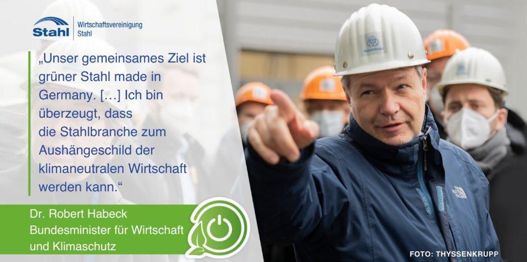 Bundeswirtschafts- und Klimaschutzminister Robert Habeck bestätigt das gemeinsame Ziel von Wirtschaft und Politik: Grüner Stahl Made in Germany.