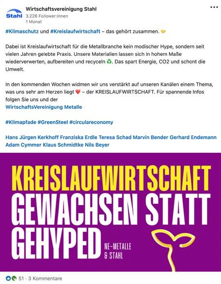 In einer ersten Phase wurde mit auffälligem Content in den Sozi alen Netzwerken auf die Initiative aufmerksam gemacht. Ein weite rer wichtiger Baustein ist eine gemein same Landingpage, die alle relevan ten Informationen zum Themenbereich Kreislaufwirtschaft für beide Branchen zusammenfasst. Weitere gemeinsame Aktivitäten, darunter Politikbriefe und Positionspapiere, sind im Zeitraum bis Ende 2024 ebenfalls vorgesehen.