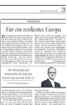 Die strategische Resilienz Europas wird zu einem vielzitierten Stichwort. In diesem Zusammenhang bekommt die Transfor mation zur Klimaneutralität weg von fossilen Energien eine neue, eine sicherheitspolitische Dimension. Der Werkstoff Stahl und intakte Wertschöpfungsketten sind dafür unver zichtbar, gerade um kurzfristig Versorgungsabhängigkeiten zu reduzieren. Kritische Infrastrukturen wie Pipelines für eine sichere Energieversorgung oder Windräder für grünen Strom gibt es nur mit Stahl.