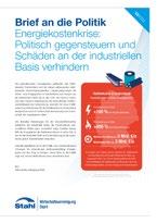 Energiekostenkrise: Politisch gegensteuern und Schäden an der industriellen Basis verhindern Brief an die Politik