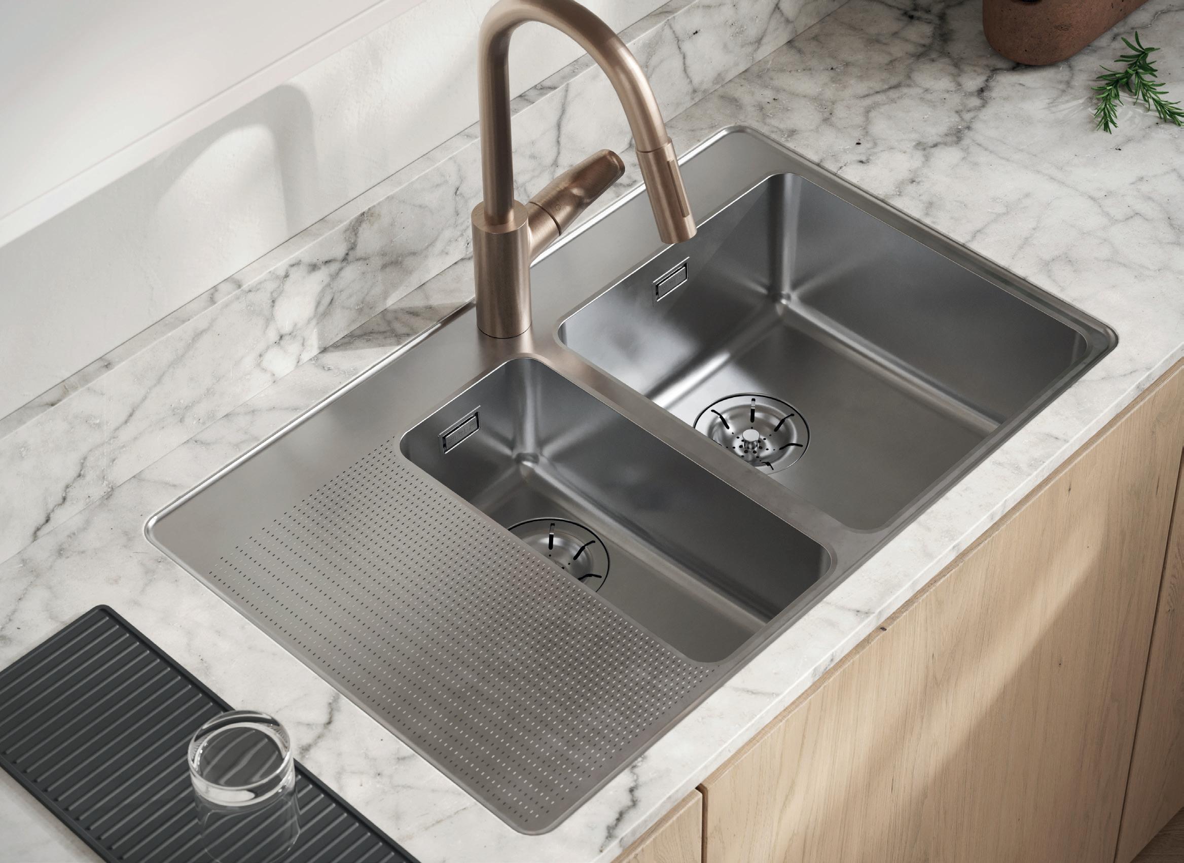 Dynaaminen kuviointi uudistaa altaan työskentelyalueen täysin. Se määrittää toiminnallisen tilan ja vähentää elämän jälkien erottuvuutta. Kuviointi valmistetaan Stalan palkitulla laserteknologialla.
