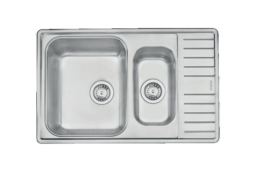 • Valgfri plassering av vasken (valgt i trinn på 5 mm)