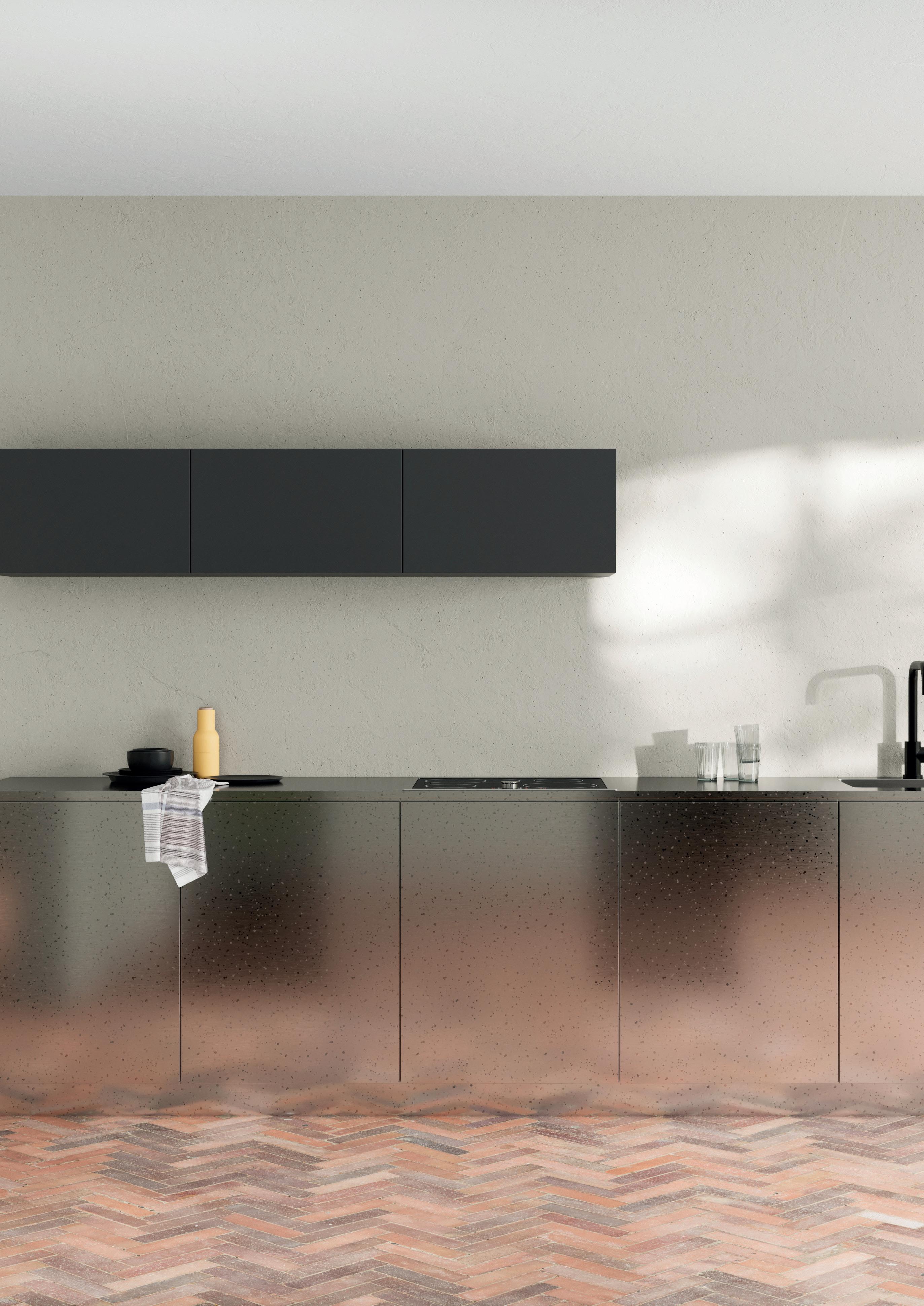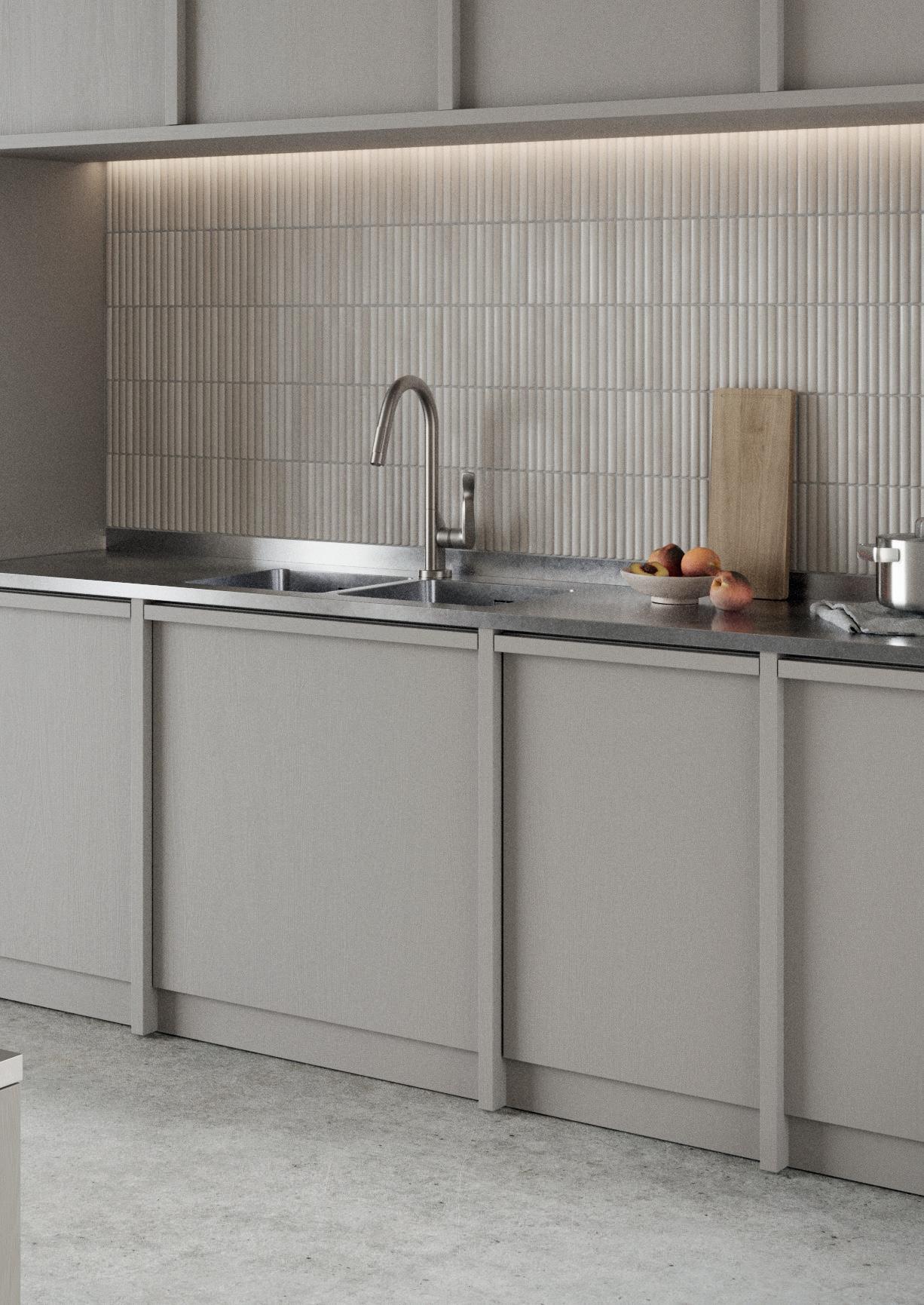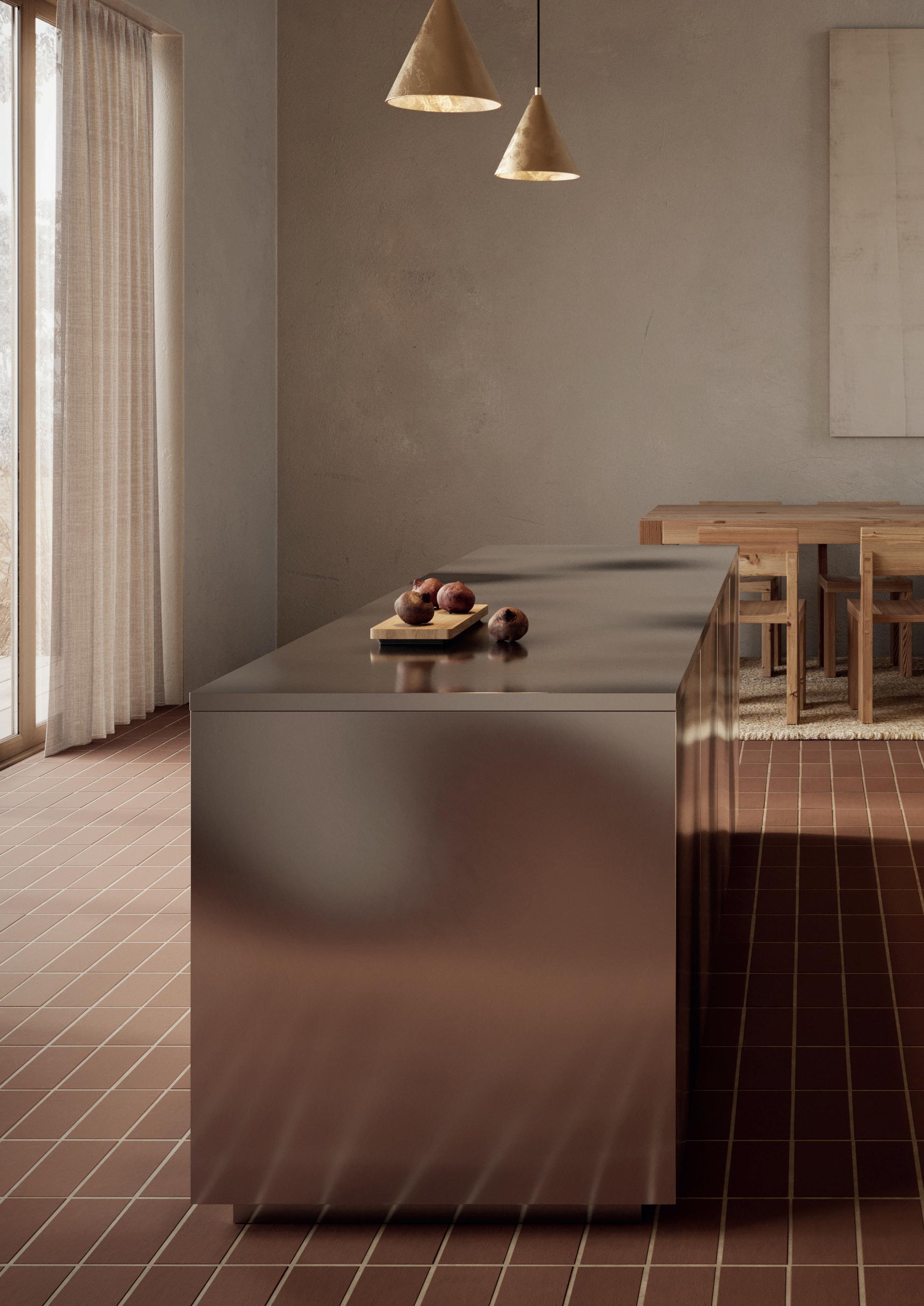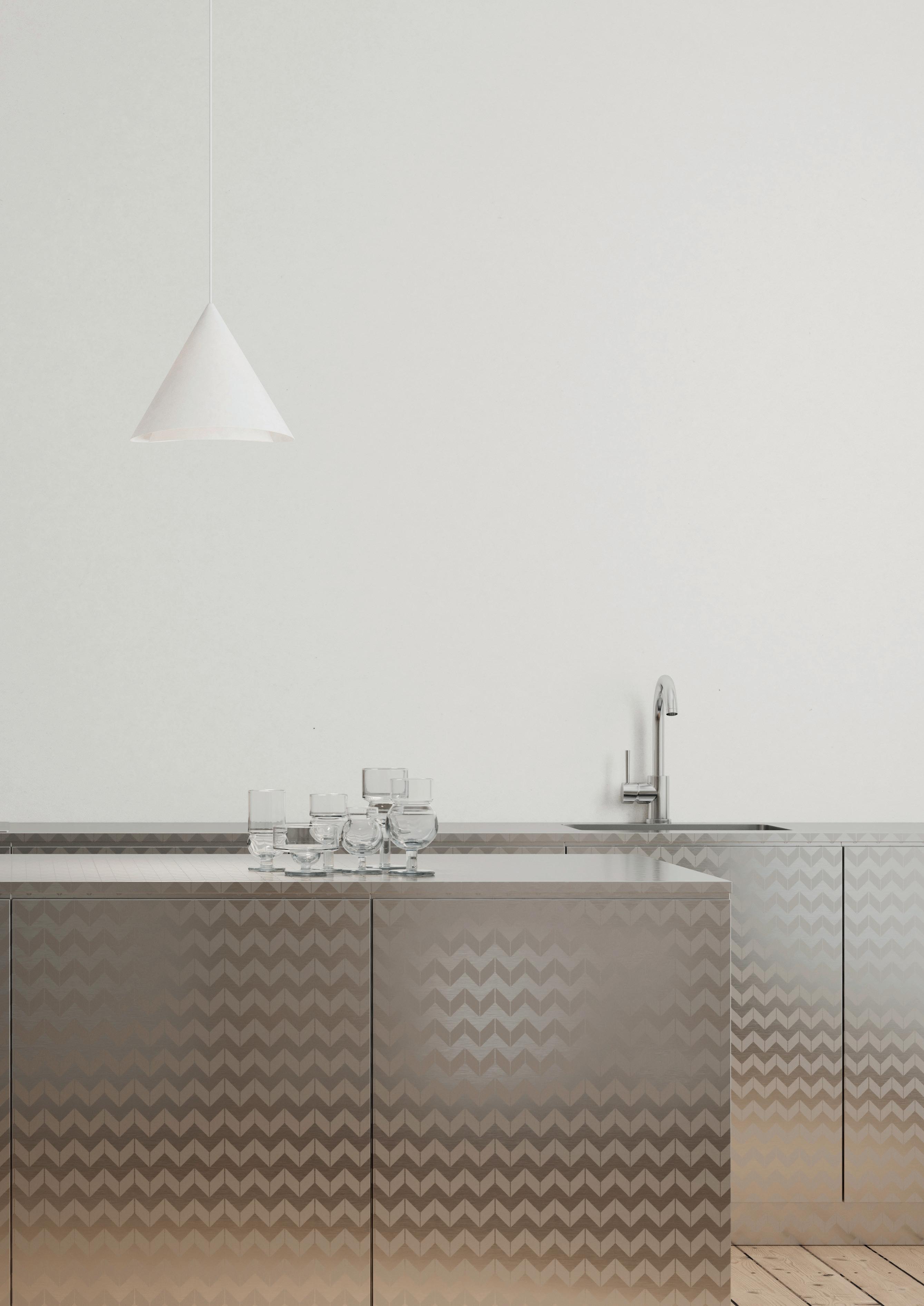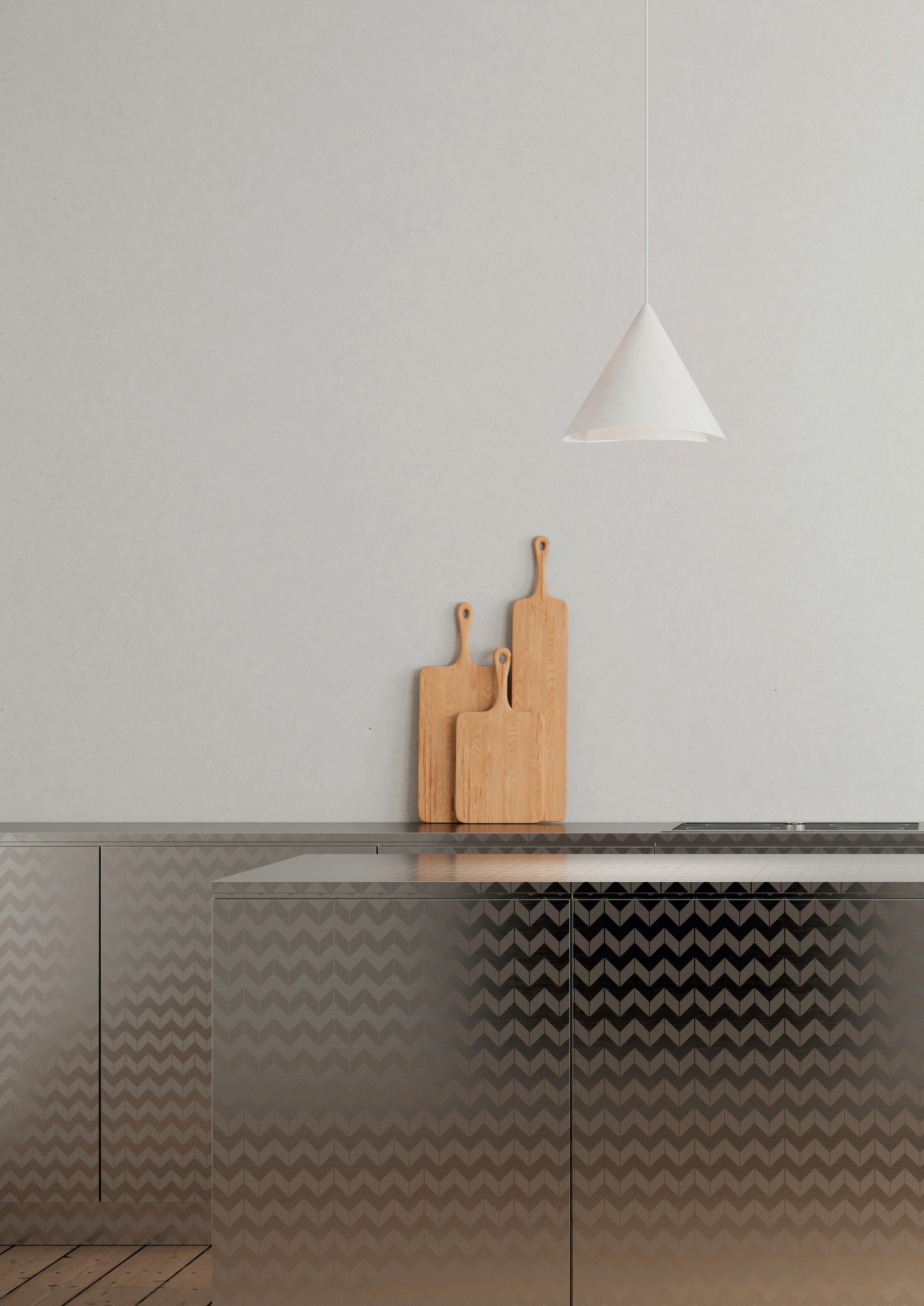 Outokumpu Circle Green til kjøkkeninteriør fordi det har opptil 93 % lavere karbonavtrykk sammenlignet med det globale bransjegjennomsnittet*.