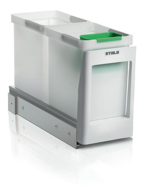 Funksjonell avfallssortering for alle typer kjøkken. Rask og enkel montering. Skru de medfølgende skyteskinnene fast i bunnen av skapet, løft vogna på plass, og det er klart!