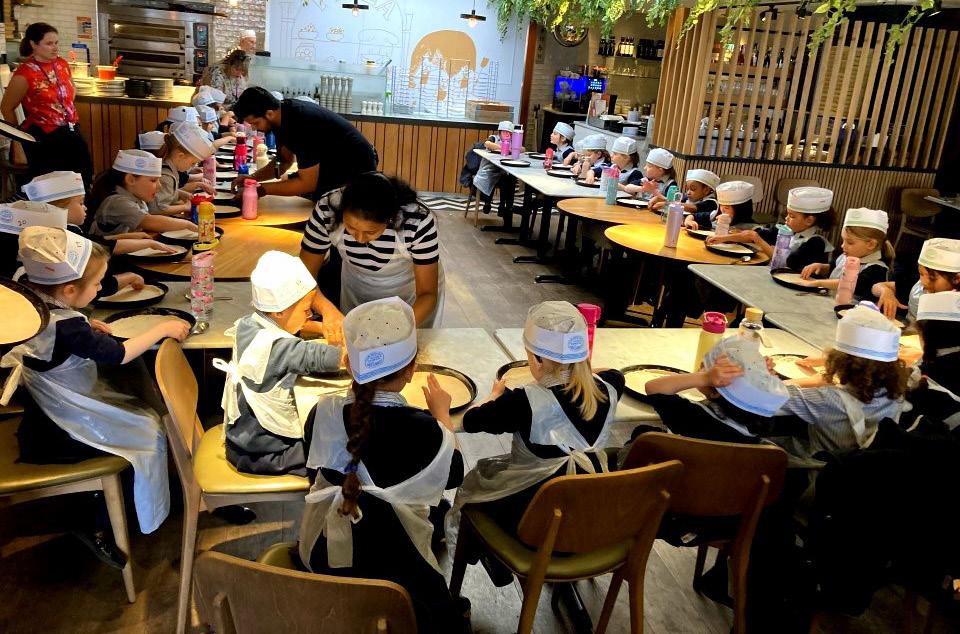 St Albans Abbey was the first day trip destination for Year 1, who took part in a maths trail and studied the stained-glass windows. They also spent a day as mini chefs at Pizza Express, where they shaped their own dough, spread the sauce, and added a cheesy topping. The highlight was tucking into their freshly made pizzas!