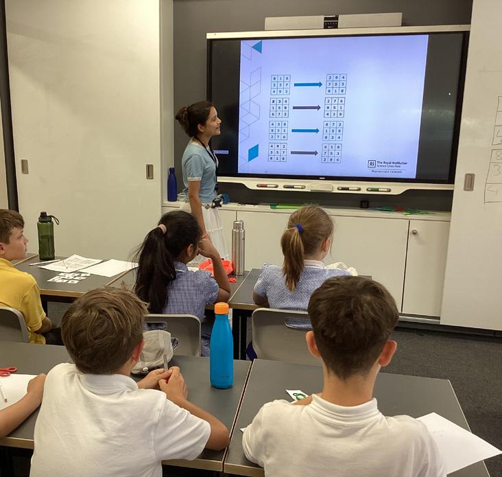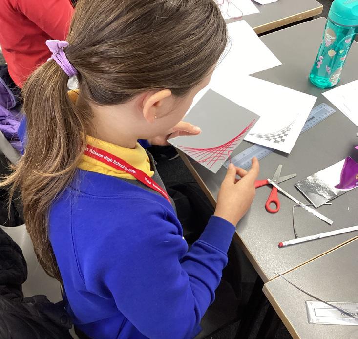 Year 5 pupils from several local primary schools were again able to benefit from a series of Royal Institution Primary Maths Masterclasses at STAHS. Led by Maths teacher Danielle Lewis, with support from Year 12 students, the engaging sessions covered topics including magic squares, plotting straight lines, and using powers of 10 to represent very large and very small numbers. There was also a visit from a member of the Royal Institution, who presented a masterclass on the mathematical beauty of curve stitching.