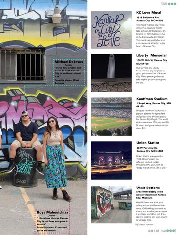 Liberty Memorial Michael DeJesus Senior “I love how artistic and down to earth Kansas City is and how cultural it is.” Favorite places: West Bottoms