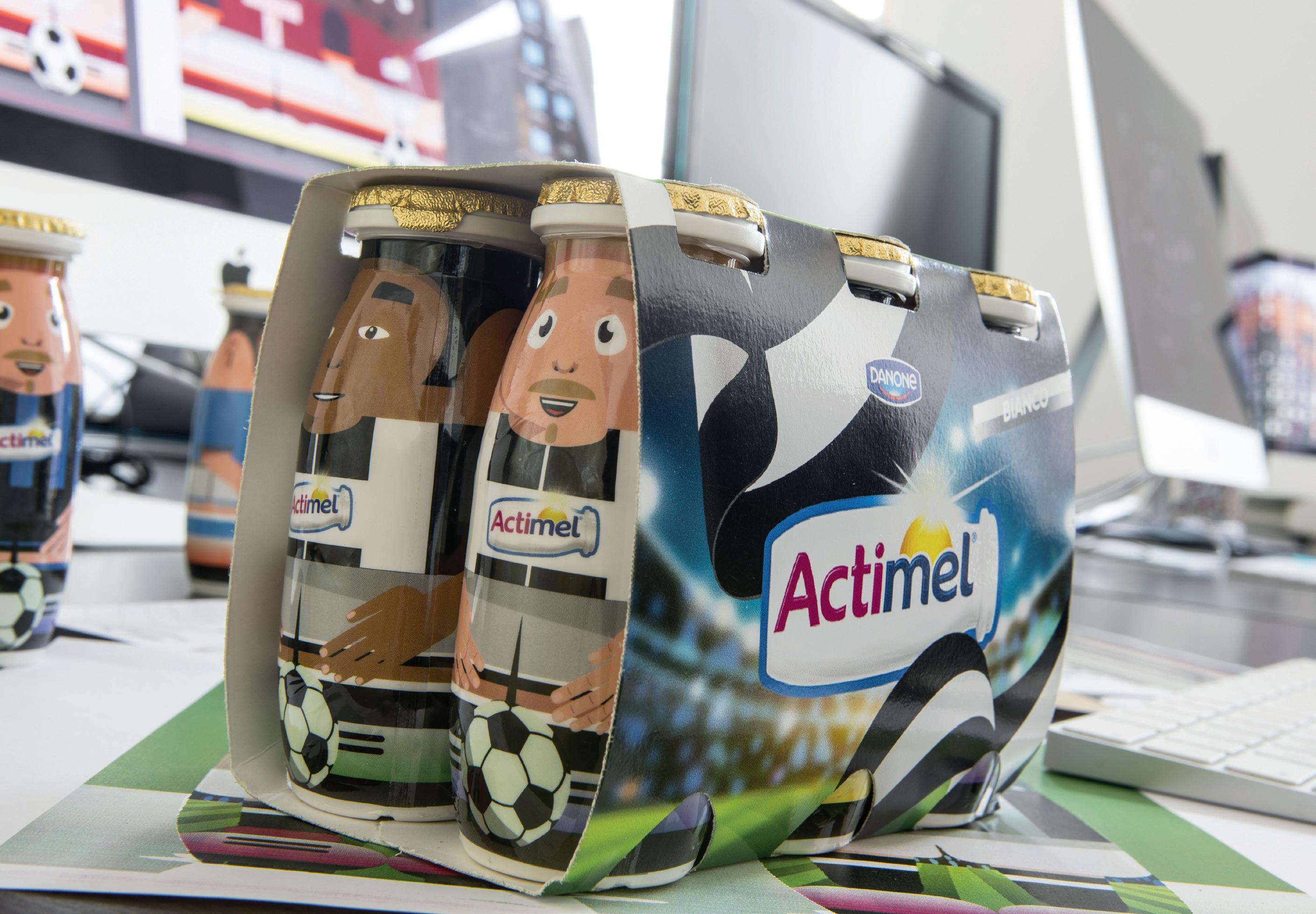 Il progetto “Il campionato Actimel” esalta all’ennesima potenza tutti questi aspetti. Grazie alle stampe personalizzate sulle bottigliette e sui cluster, il brand Actimel seduce il cliente, offrendogli un percorso d’acquisto sempre nuovo. Non solo un prodotto, ma anche un’esperienza personale, anzi personalizzata: la possibilità di scegliere e ideare, da casa, il packaging preferito, per seguire le nostre passioni e ricreare il nostro mondo.