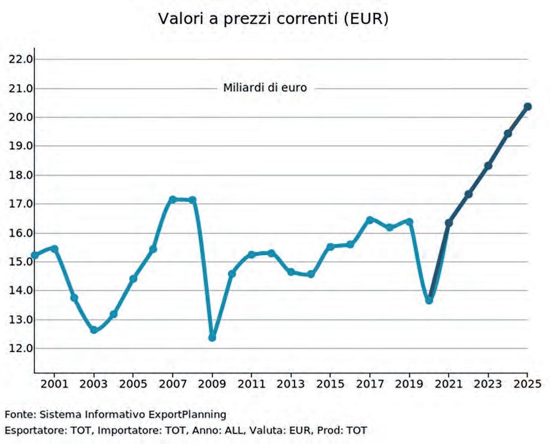 In the scenario to 2025, Italian exports of the sector in euros will grow by +4.6 percent this year, and at a similar pace in the following three years