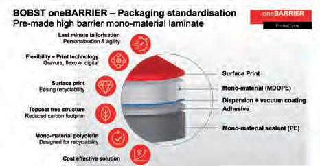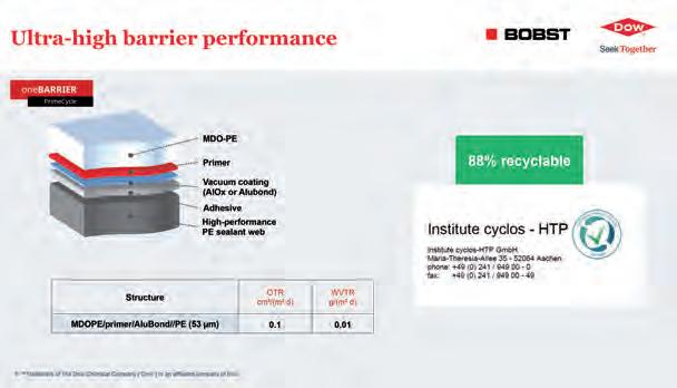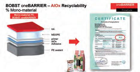 52 Nuovi packaging monomateriale: la prova del 9 New monomaterial packaging: the ultimate test (Bobst Italia San Giorgio Monferrato, Dow Packaging and Specialty Plastics, Poplast Srl)