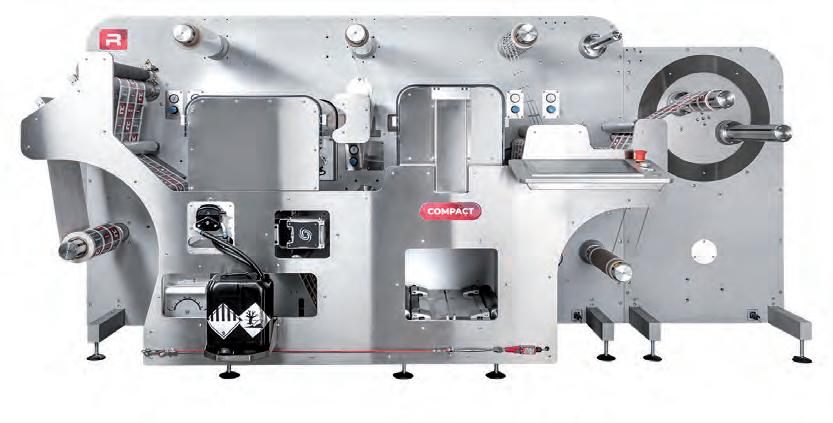 It is a complete system with cutting-edge technology. The COMPACT 2 is equipped with: a semi-rotary flexographic station, Corona treatment, UV-led system, cold lamination unit, semi-rotary die-cutting and a semi-automatic turret which increases productivity up to 2 times. All machines in