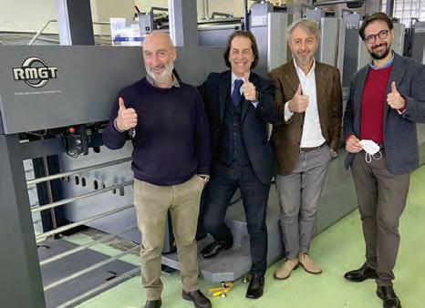 dei lavori di una 70x100. Questo consente un forte abbattimento dei costi di gestione, consumi elettrici, lastre e consumabili vari. Un altro motivo della scelta è dato dalla volontà di riportare nell'offset il lavoro che ad oggi è stato stampato in digitale, grazie al vantaggioso costo copia e alla velocità degli avviamenti della nuova RMGT. Le prime impressioni sono state molto positive. La macchina è molto funzionale e di semplice utilizzo, dotata di mettilastra simultaneo, telecamere di controllo e regolazione degli stampati, forni LED di ultima generazione che garantiscono risultati di alta qualità (tecnologia nuova per l’azienda che fino a prima stampava solo in convenzionale). L’obiettivo dell’azienda è quello di diventare sempre più competitiva in un mercato condizionato, soprattutto nelle piccole tirature, dall’avvento delle nuove tecnologie e dalla stampa digitale. Le macchine ECO friendly hanno basse emissioni per l'operatore con un consumo energetico di soli 58 KW, record assoluto per una macchina offset a 8 colori offset.