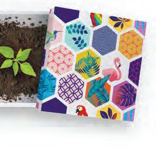 Natural Green Evolution è una carta bianca eco-friendly certificata FSC Recycled, caratterizzata da un aspetto naturale che la rende particolarmente indicata per l’editoria di pregio. Risulta molto versatile, perché offre un elevato Ink Hold Out, per immagini brillanti, di forte dettaglio e contrasto. Adatta alle principali tecnologie di stampa e nobilitazione, Natural Green Evolution ha un buon livello di rigidità e resistenza, ed è disponibile nella colorazione White, e nelle grammature 120, 145, 200, 280 e 320. Il risultato finale interpreta perfettamente l’immaginario onirico dell'artista, che prende spunto dal mondo delle piante, degli insetti, ma anche dall'architettura moderna, dalla mitologia e dai decori di ispirazione orientale.