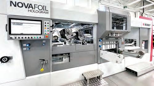 Solo due anni fa veniva presentata NOVAFOIL 106. Era la prima macchina per stampa a caldo in linea di Bobst a offrire l’opzione di stampa trasversale, aumentando efficienza e versatilità. Un nuovo livello di qualità della nobilitazione viene ora assicurato dalla sezione di platina riprogettata che garantisce tempi di impressione più lunghi, temperatura stabile della platina e pressione più elevata. L’affidabilità, unita a un uso economico della banda e a una grande flessibilità, è un’altra caratteristica saliente della nuova versione di questa macchina compatta e produttiva. E’ un nuovo sistema con moduli per ologrammi singoli che può essere montato sui binari della NOVAFOIL 106. Con fino a due binari e cinque moduli ciascuna, 10 bobine di ologrammi di larghezza max 100 mm possono ora realizzare in un unico passaggio lavori che precedentemente richiedevano due lavorazioni. Per garantire la qualità a zero difetti, la NOVAFOIL 106 H è stata dotata di un registro per ciascuna bobina così da offrire un’applicazione perfetta. Per ridurre ulteriormente i tempi di impostazione, Bobst ha progettato anche un tavolo di avviamento digitale (DMT). Traendo ispirazione dalla soluzione per il controllo della qualità del tavolo di ispezione digitale (DIT), il PDF di qualsiasi lavoro di nobilitazione può essere inviato al DMT dove il layout digitale viene proiettato direttamente sul telaio a nido d’ape. La proiezione indica con precisione dove posizionare i cliché, eliminando dispendiosi controlli di impostazione. Nulla è stato lasciato al caso per accertarsi che gli utilizzatori della NOVAFOIL 106 H possano beneficiare di versatilità, impostazioni rapide e massima precisione, per una protezione eccezionale del brand tramite l’applicazione di ologrammi.