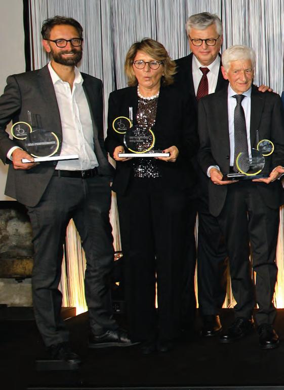L’Oro Cent’anni di stampa va a Flamini. Dal 1923 la famiglia Flamini accompagna i propri clienti con soluzioni complete che vanno dalla progettazione alla stampa di etichette, packaging, gadget aziendali e soprattutto lavorazioni uniche e su misura per il cliente. Dall’anno in cui Flaminio Flamini fondò una stamperia artigiana a Jesi, producendo sacchetti in ‘carta paglia’ il percorso di innovazione e trasformazione, seguendo le richieste del mercato, ha visto alternarsi più generazioni della famiglia. È con la seconda generazione e con Mauro e Fausto Flamini che l’azienda, trasferitasi ad Ancona e superate le problematiche del terremoto, inizia a crescere con anche l’acquisto di una rotativa a modulo continuo, e, con la terza generazione Francesco e Alberto, la proiezione verso nuovi mercati. Dopo il trasferimento a Osimo nasce Flamini Ufficio e nel 2000 l’azienda è in grado di seguire sia il mercato dell’ufficio sia quello delle arti grafiche. Ulteriori innovazioni nelle macchine offset e per etichette traghettano la famiglia alla quarta generazione con Sara e Alessandro che contribuiscono a completare la gamma di tecnologie disponibili con l’aggiunta al parco macchine di soluzioni di stampa digitale, con le quali hanno aumentato i servizi che la centenaria azienda propone ai suoi clienti.