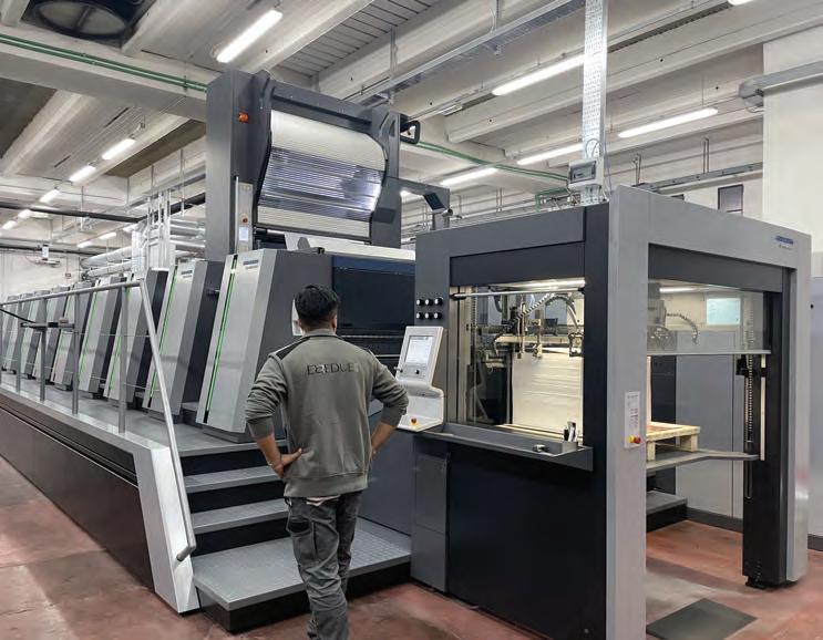 regime con un uptime dell’87%. A distanza di poco meno di 2 anni, Poligrafici il Borgo ha saturato la capacità produttiva della linea: vengono prodotti una media di 180.000 libri a settimana su due turni. La linea di finitura Kolbus ha dato ancora una volta prova della sua versatilità con le diverse macchine da stampa digitali. La tecnologia digitale è ormai matura per affiancare e in molti casi sostituire i sistemi offset. I macchinari sono integrati e grazie al sistema di codice a barre, la piegatrice è in grado di creare in automatico blocchi libro di foliazione diversa in sequenza.