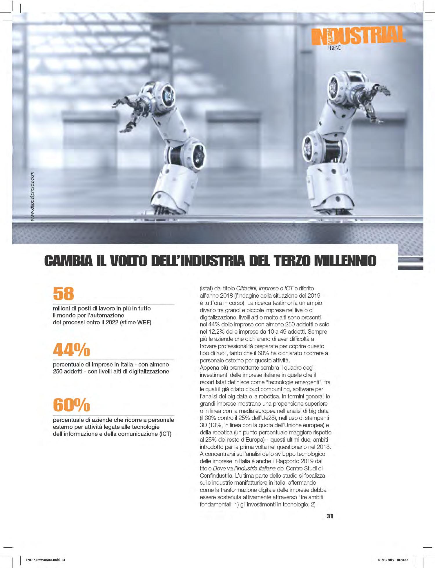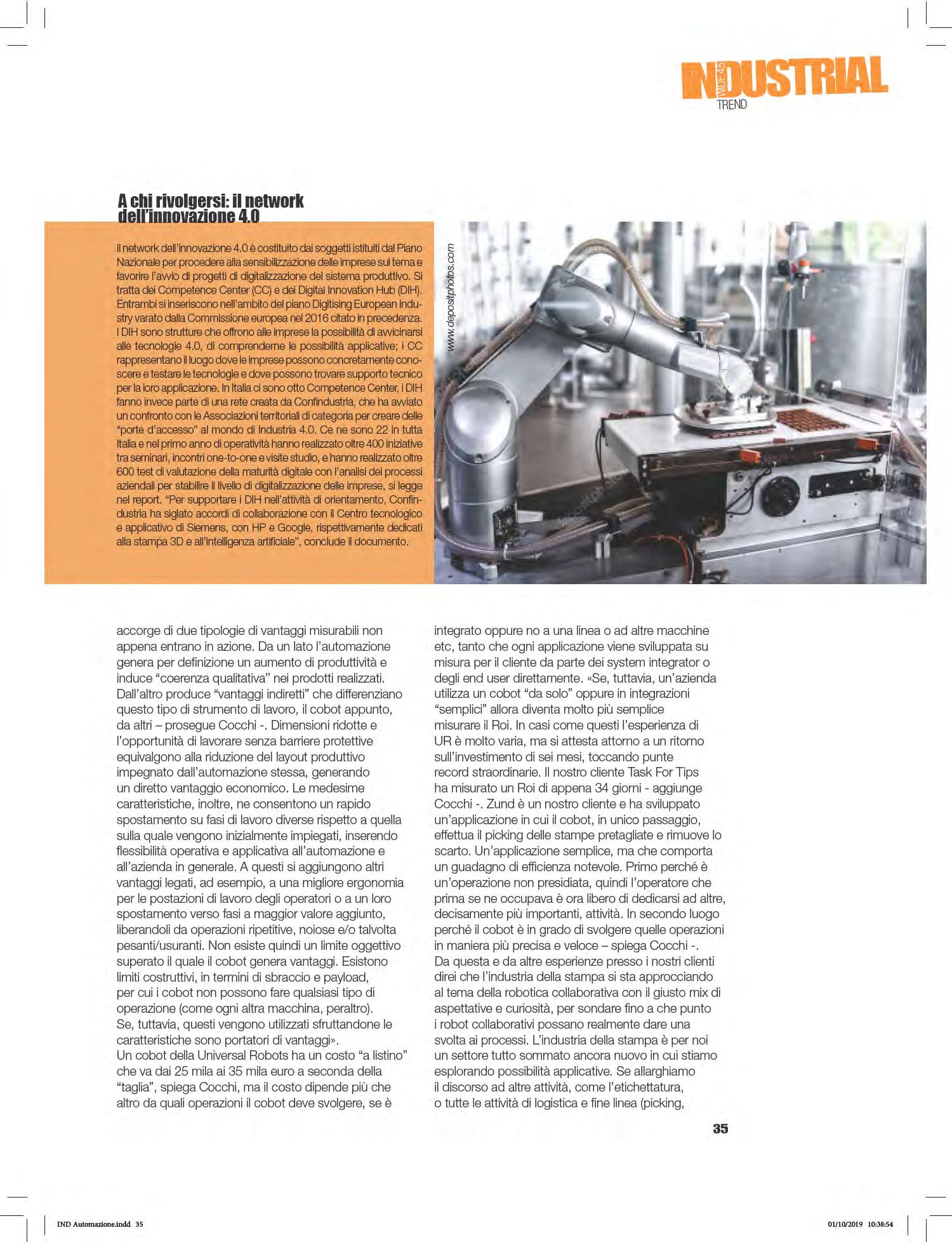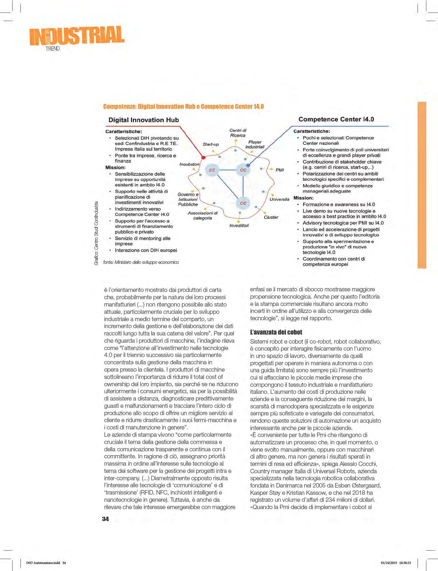 Al tavolo degli incontri di questi primi mesi di attività dei DIH c’era anche la Federazione Carta e Grafica che rappresenta i comparti industriali di Acimga (macchine per la grafica e cartotecnica), Assocarta (carta e cartone) e Assografici (grafica e cartotecnica, trasformazione), con Unione Grafici di Milano e Comieco quali soci aggregati, e che ha voluto procedere a un “Check-up Industry 4.0”, in collaborazione con SDA Bocconi. Si tratta di un primo tentativo di capire in che modo stiano reagendo le aziende del comparto: l’indagine è stata condotta tra dicembre 2017 e marzo 2018 fra le aziende facenti parte Federazione Carta e Grafica, e il totale dei rispondenti validi (108 su 774) rappresenta un campione pari al 14% della popolazione indagata. Dal report pare emergere “una chiara tendenza: seppur con un certo ritardo complessivo la filiera si sta muovendo, anche grazie alle sollecitazioni associazionistiche e confindustriali in genere, verso la creazione delle condizioni strutturali per poter poi cogliere appieno i vantaggi e le opportunità offerte dalla trasformazione paradigmatica in atto”, si legge nello studio.