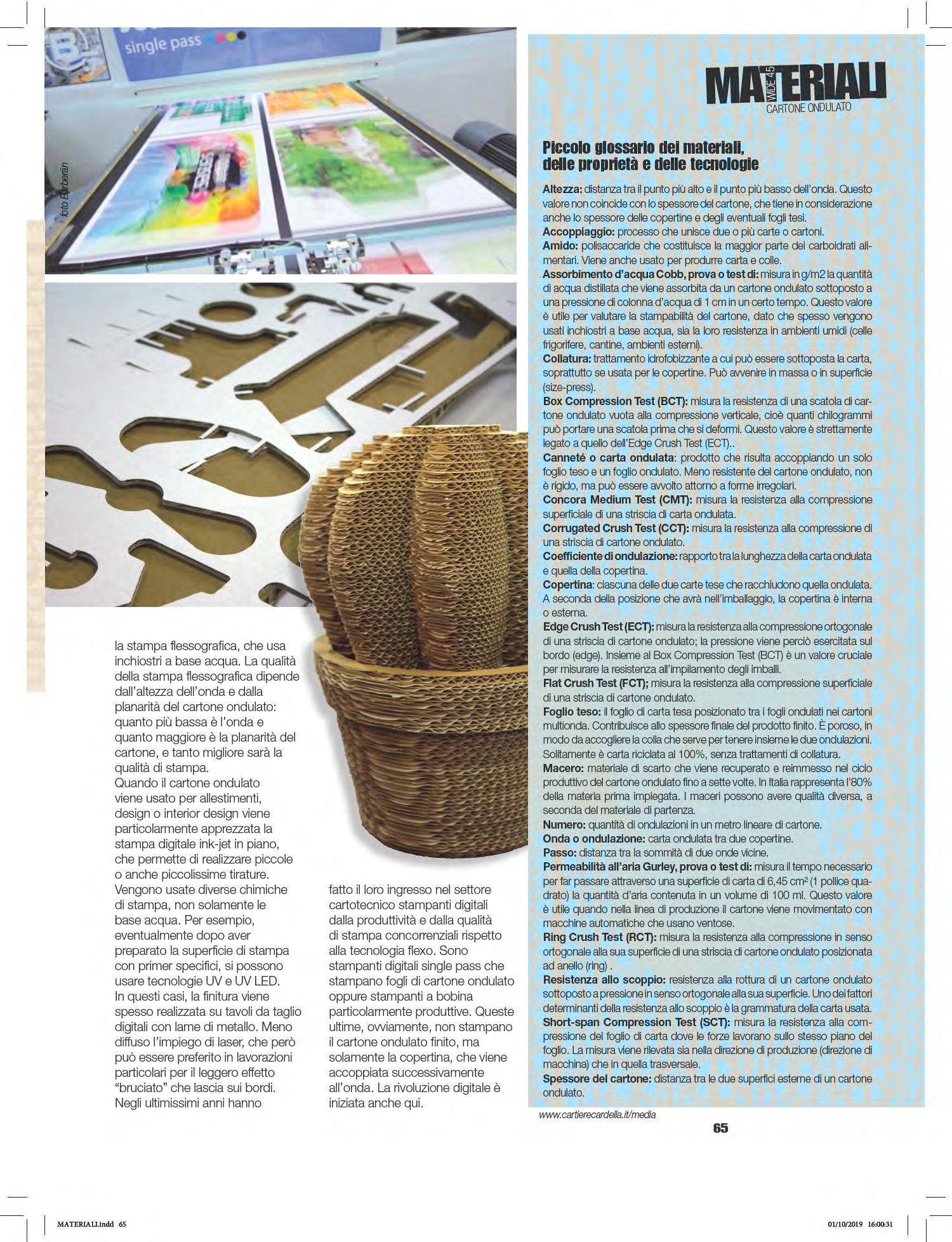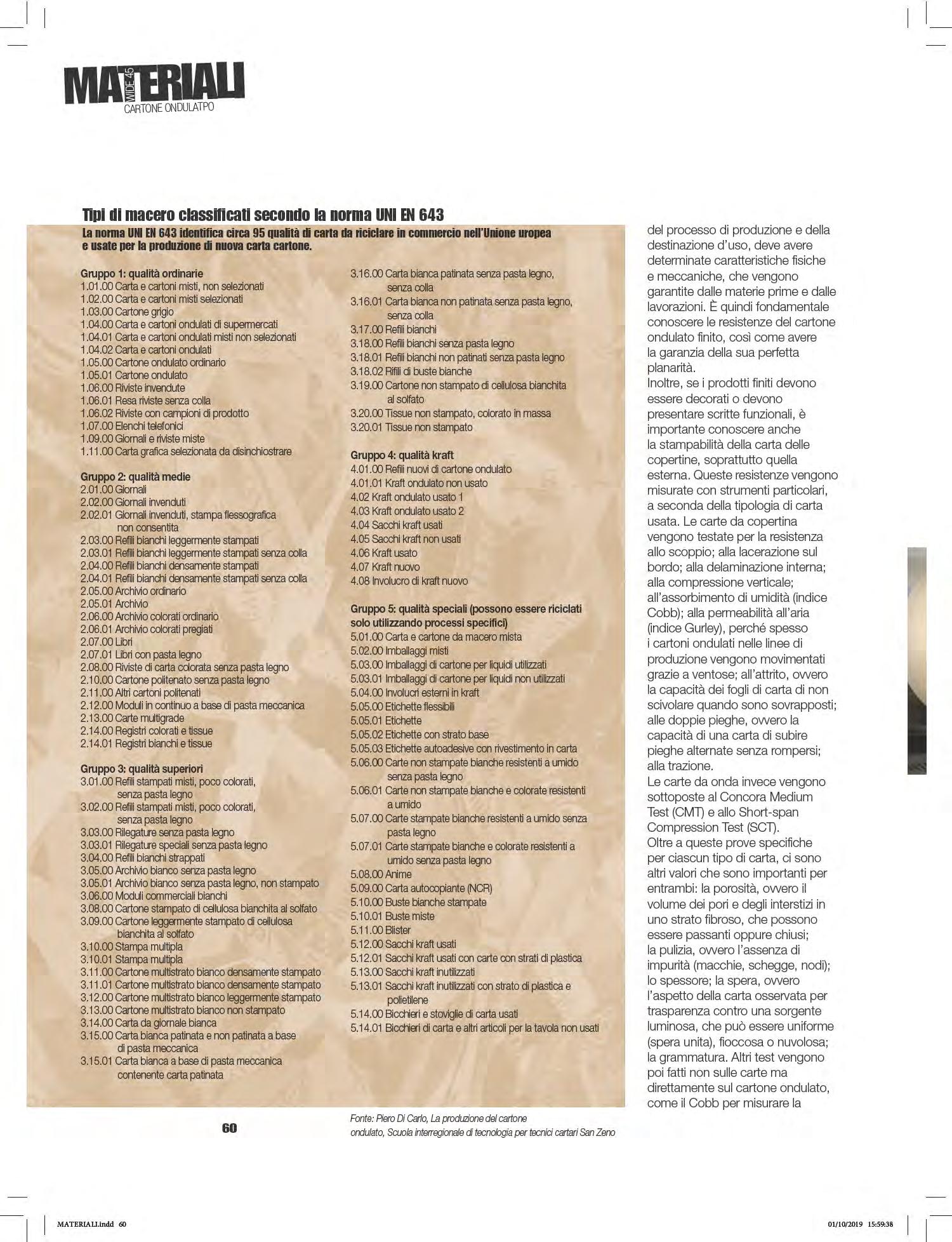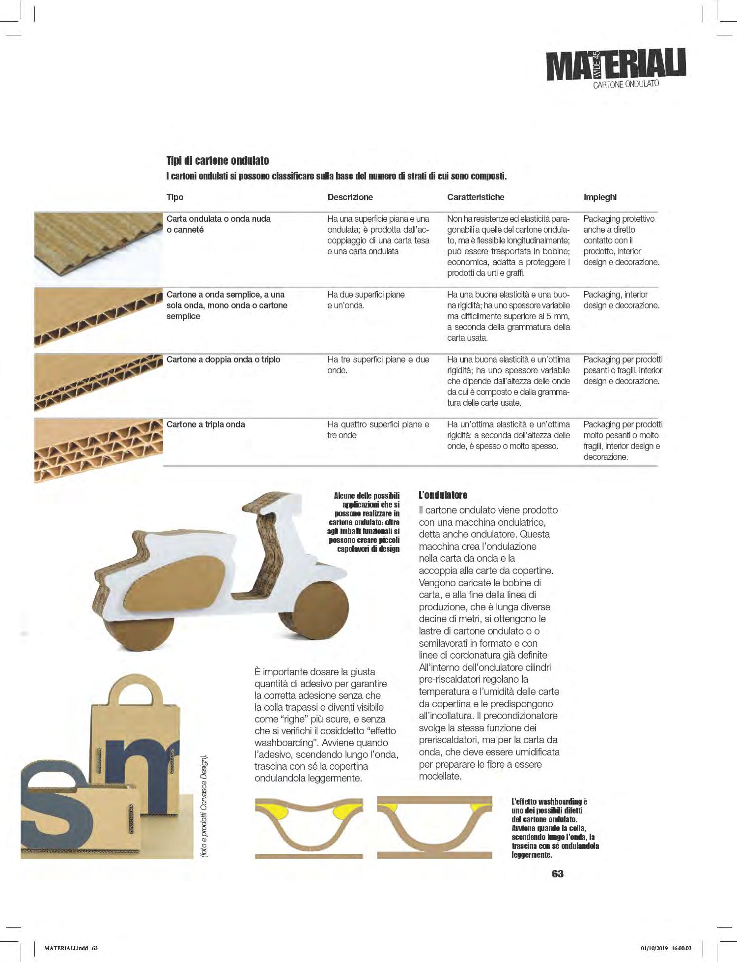 Le carte usate per produrre il cartone ondulato sono molte, e spesso sono diverse tra copertina interna, onda e copertina esterna. Ciascuna bobina deve avere caratteristiche peculiari, e la