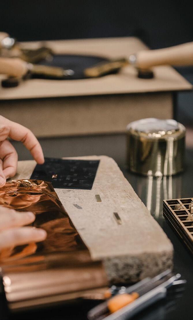 L’Atelier Luxe is equipped with modern tools and technologies as well as specialist labour to insert the technology in each slipcase following a technical specifications document supplied by VM France that holds the technical know-how and ensures R&D. Each