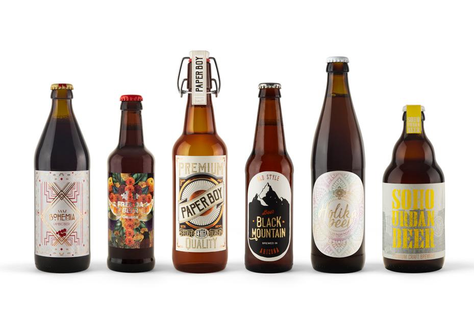 crucial detail. Not only high technical performances but also the flawless response to the most complex and varied printing techniques are the key words of all the frontal labels in the Arconvert range. This is how the new catalogue, The Beer Labelling Experience by Manter, came into being. It contains materials purposely designed for labelling craft and premium beers: a collection of self-adhesive materials which, thanks to the Ultra WS and waterproof technologies and a high-performance adhesive, resist condensation, temperature changes and contact with ice. The possibilities of choosing textures and finishings are endless too: Arconvert offers self-adhesive papers that are embossed, marked with felt, laid, pearlescent and metallic. There are also