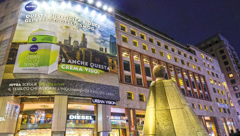 Maxiaffissioni che assorbono lo smog, pannelli erbosi che puliscono l’aria, rivestimenti in tessuti che disgregano le molecole inquinanti. La sostenibilità ambientale ha ormai conquistato la comunicazione esterna.