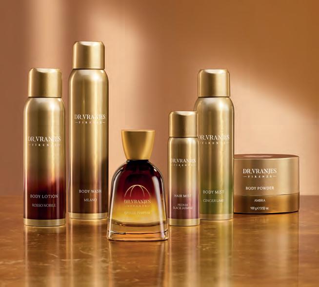 Dr. Vranjes Firenze, leader mondiale nel settore delle fragranze d’ambiente, ha affidato ad ArteficeGroup lo studio di packaging e VIS della nuova collezione completamente dedicata alla cura della persona: prodotti ideati e realizzati a Firenze con l’obiettivo di rendere la beauty routine più piacevole e profumata. Il progetto, seguito in collaborazione con MAD-E Packaging Ecosystem, parte dallo sviluppo dell’architettura del brand, nel pieno rispetto dei suoi valori e dell’identità di marca. La nuova collezione celebra l’artigianato fiorentino e la creatività italiana ed è composta da Eau de Parfum, Body Wash, Body Lotion, Body Mist, Body Powder e Hair Mist. La bottiglia dell’Eau de Parfum è liberamente ispirata alla base ottagonale della cupola del Brunelleschi, segno distintivo di tutte le creazioni firmate Dr. Vranjes Firenze. Il pittogramma sul tappo dorato e una piacevole sfumatura ambrata sul vetro impreziosiscono la bottiglia rendendola unica ed elegante. Il packaging secondario presenta piacevoli sfumature colorate ispirate alla piramide olfattiva della specifica profumazione (Ambra, Ginger Lime, Milano, Rosso Nobile, Peonia Black Jasmine). Per la cura e l’idratazione di pelle e capelli è stato selezionato un flacone in alluminio dorato. Innovativo e riciclabile, diffonde piacevoli sensazioni profumate servendosi della sola aria al suo interno, in totale assenza di gas. In questo caso, le sfumature olfattive sono state scelte per caratterizzare sia il packaging primario che quello secondario.