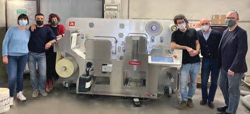 consolidato, applicato in Rotocel Space alle macchine di stampa digitale HP Indigo, alla finitura digitale MGI JETVarnish e al tavolo di ispezione, taglio e ribobinatura Labeltech, che viene ulteriormente ampliato con l’integrazione della macchina di nitura Re ne. Naturalmente le altre macchine del reparto di nitura non coinvolte nel usso Industria 4.0 non sono ignorate da Azul5, dal momento che le loro lavorazioni sono comunque registrate a sistema in tempo reale, assieme alla situazione del magazzino bobine e delle consegne, venendo così integrate nel sistema informativo aziendale.