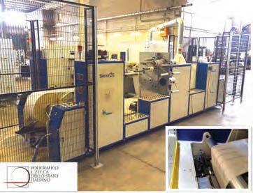 È stato un onore poter fornire una nostra Secur20 allo Stato italiano e nello specifico all’ “Istituto Poligra co e Zecca dello Stato - Carte Valori di Foggia” per la produzione di marche da bollo realizzate su carta termica adesiva, una nuova s da ed un traguardo raggiunti con successo. Nuove forme e nuovi equipaggiamenti per una applicazione ad alta precisione tramite una più performante gestione elettronica, che vede funzioni diverse. Ad esempio, in caso di rottura del nastrino, un rallentamento della linea sino all’arresto e una regolazione ad alta precisione della pressione gestita direttamente tramite il pannello opera-