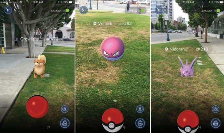Una schermata di Pokémon Go, un videogioco gratuito per smartphone basato su realtà aumentata geolocalizzata con GPS, diventato virale nel 2016.