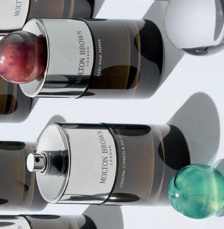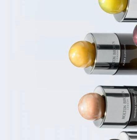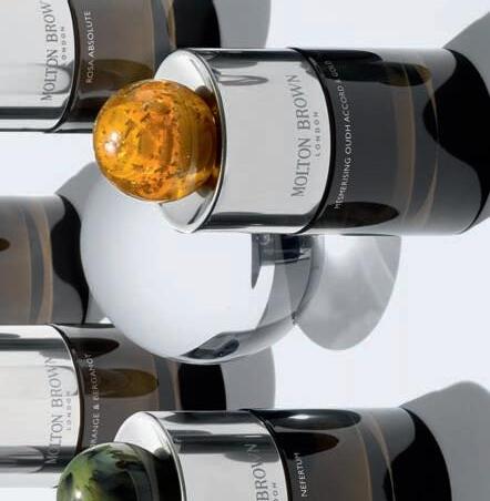 VV: A key aspect of my recent design for Molton Brown’s fine fragrance collection, is the resin orb cap. My objective was to express the individuality of each scent, and the use of resin allowed me to use a different colour for each fragrance in the range. In addition to this, the manufacturing process means no two caps are the same, with each unit presenting its own unique pattern arrangement. This proved a real value-adding component of the design, and by making the bottle refillable we ensured the impact of the packaging was reduced.
